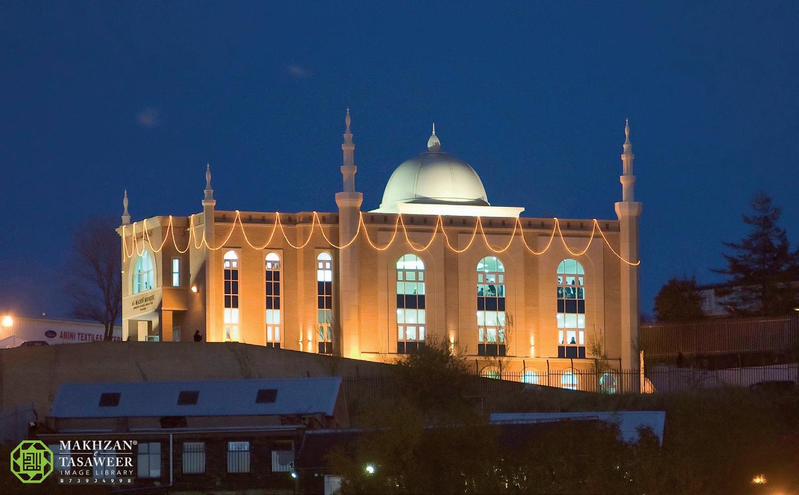 This mosque was inaugurated by Hazrat Mirza Masroor Ahmad (aa) on 7 November 2008. The area was purchased by the Ahmadiyya Muslim Community on 3 July 2000. It includes a total of 1506 sq metre (1.7 acres). Located in Rees Way, Bradford, the mosque lies on a plateau, and therefore the mosque is visible from miles around within the city. The mosque was built at a cost of £2.5 million.