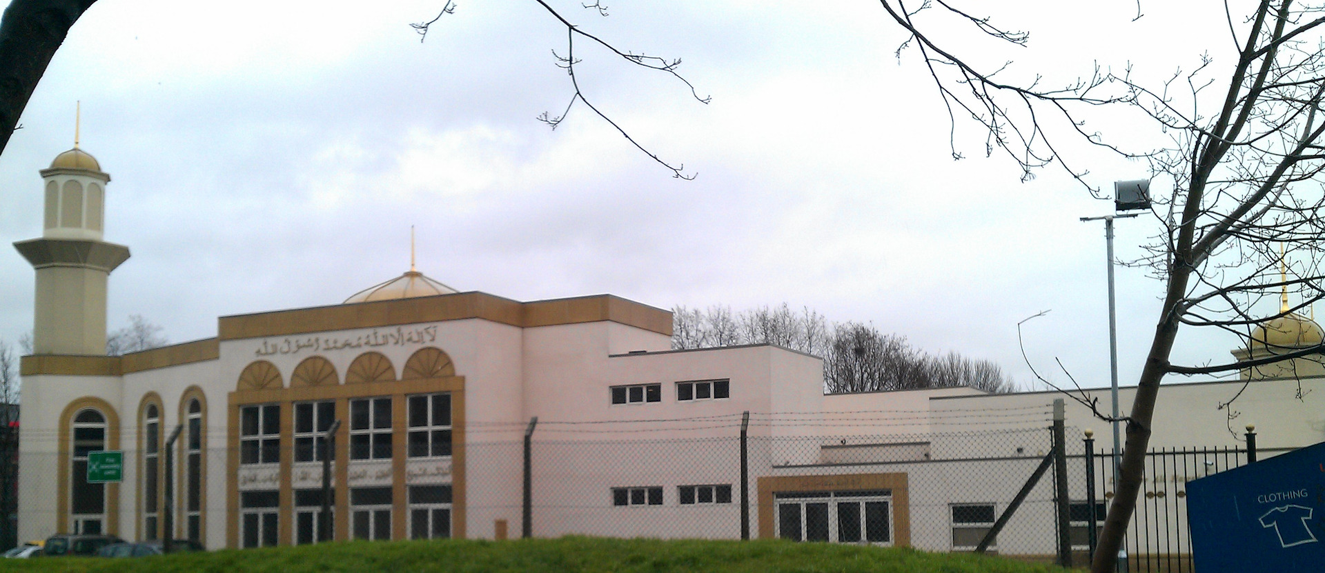 The Mosque is situated in the City of Hulme which is in the electoral ward of Manchester, England. It is south of Manchester City Centre and is an area with significant industrial heritage.