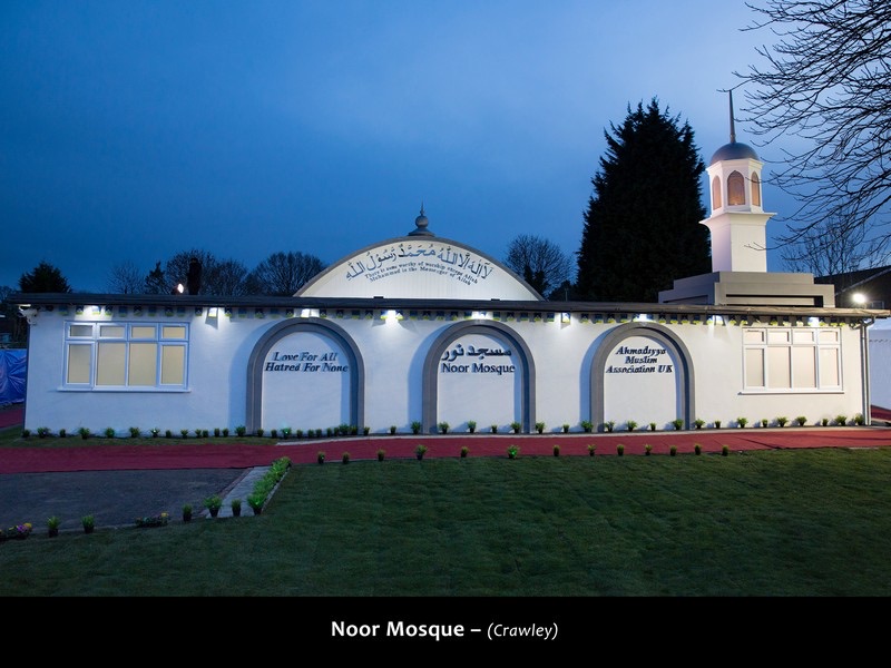 This former church was bought by the Ahmadiyya Jamaat UK in 2012. It has been renovated and transformed into a mosque where the local Jamaat of Crawley can make use of it for prayers and other community events. The official inauguration took place on Saturday 18 January 2014 with the presence of his holiness Hadhrat Mirza Masroor Ahmad, the fifth Khalifa of the Promised Messiah of Islam. This mosque is located very close to the London Gatwick International Airport.